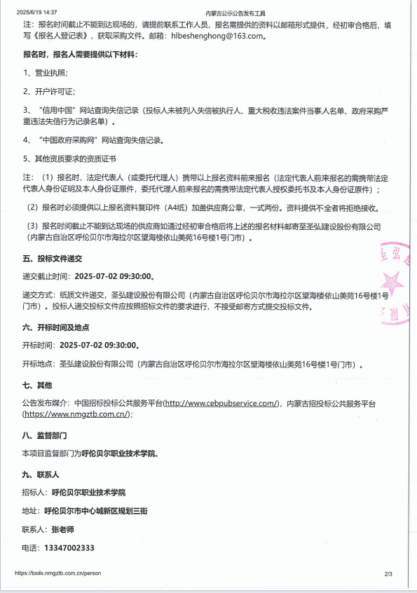 呼伦贝尔职业技术学院设备采购项目询价结果公示